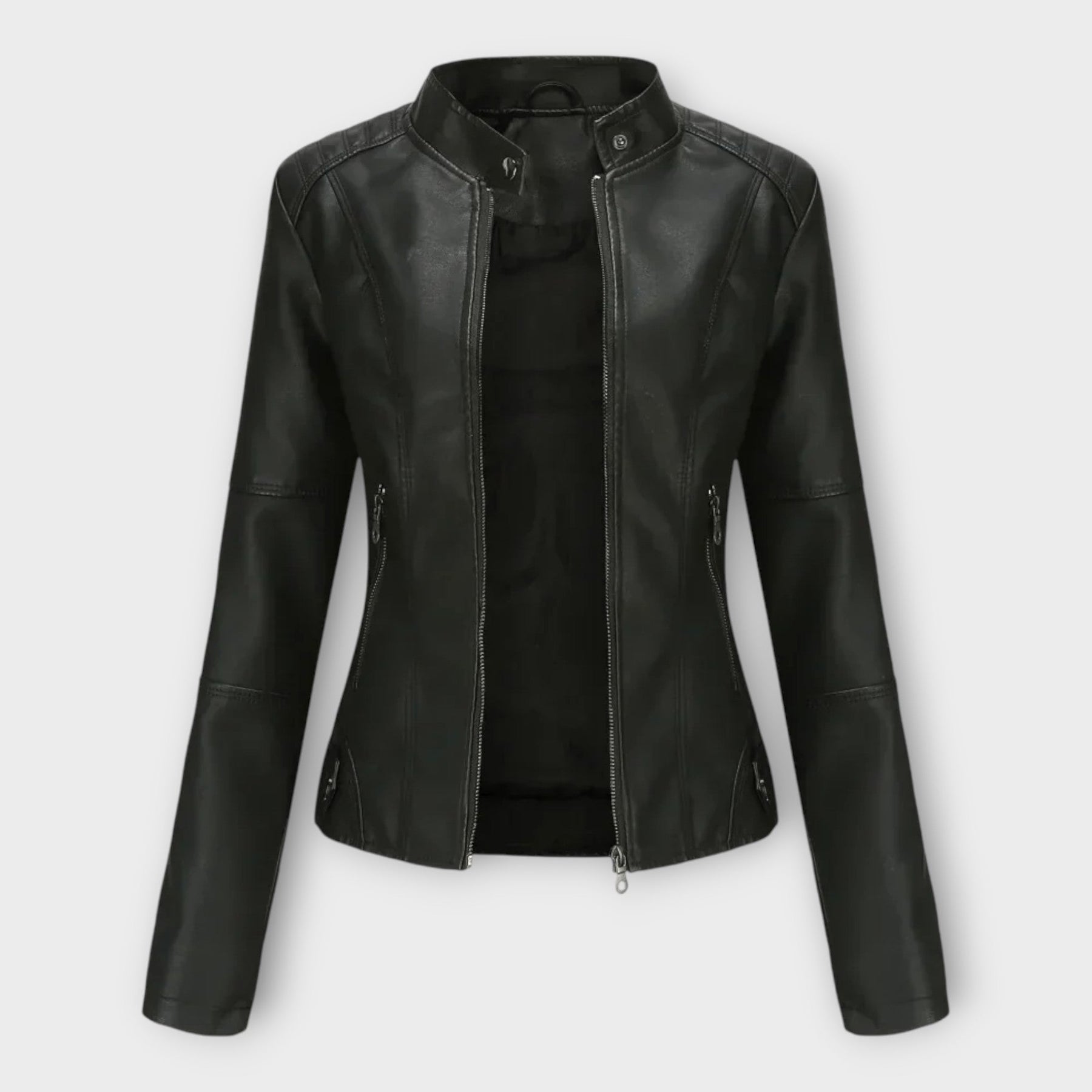 Modern Rövid Bőrkabát Cipzárral