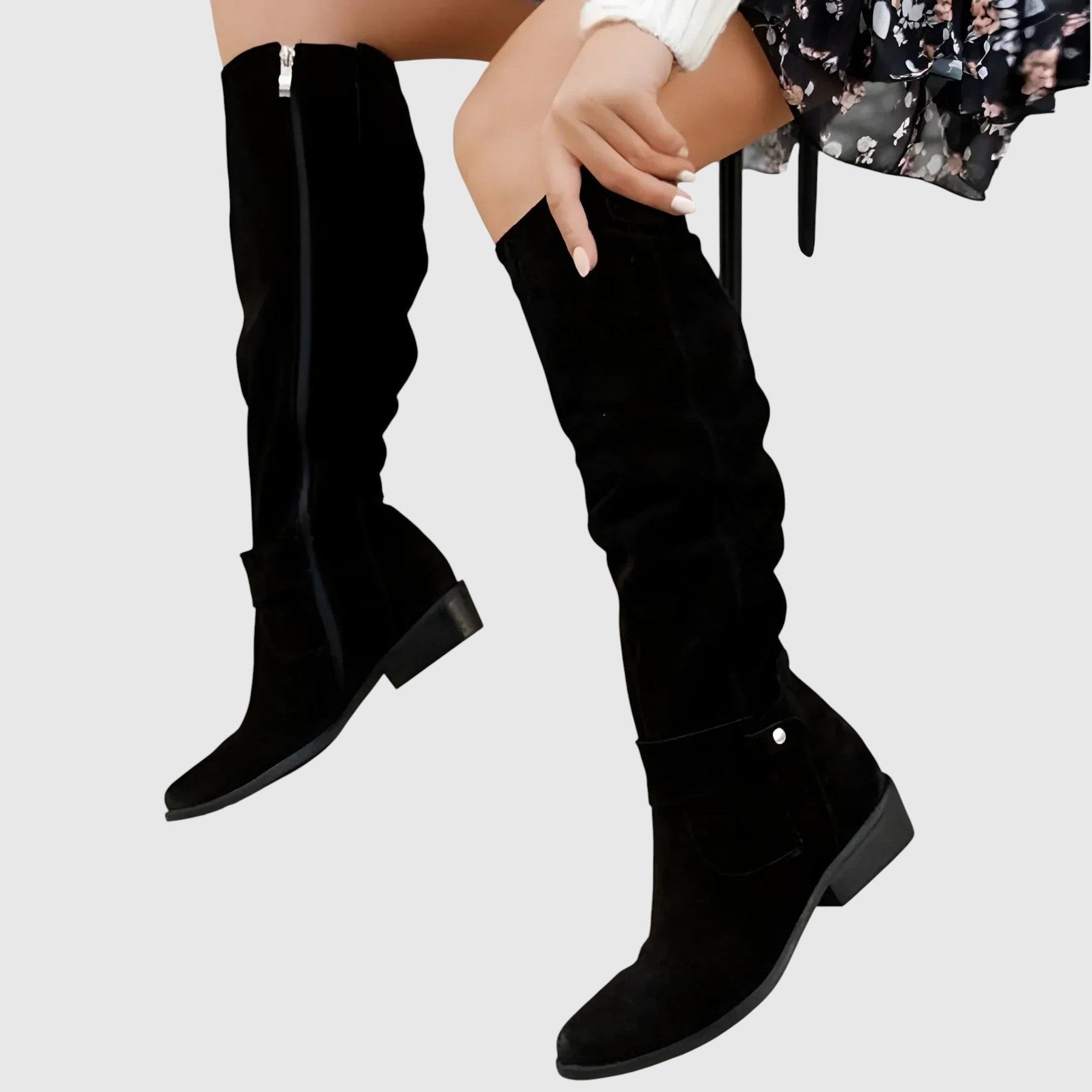 Magas csizma „slouch” dizájnnal, lekerekített orral és alacsony stabil sarokkal. Könnyen felhúzható, bonyolult csatolás nélkül, puha és rugalmas felső anyag, amely természetes módon alkalmazkodik a vádlihoz. A függőleges varrások optikailag meghosszabbítják a sziluettet. Tökéletesen kombinálható ruhákkal, szoknyákkal és farmernadrágokkal — a hétköznapi naptól a laza elegáns outfitekig.