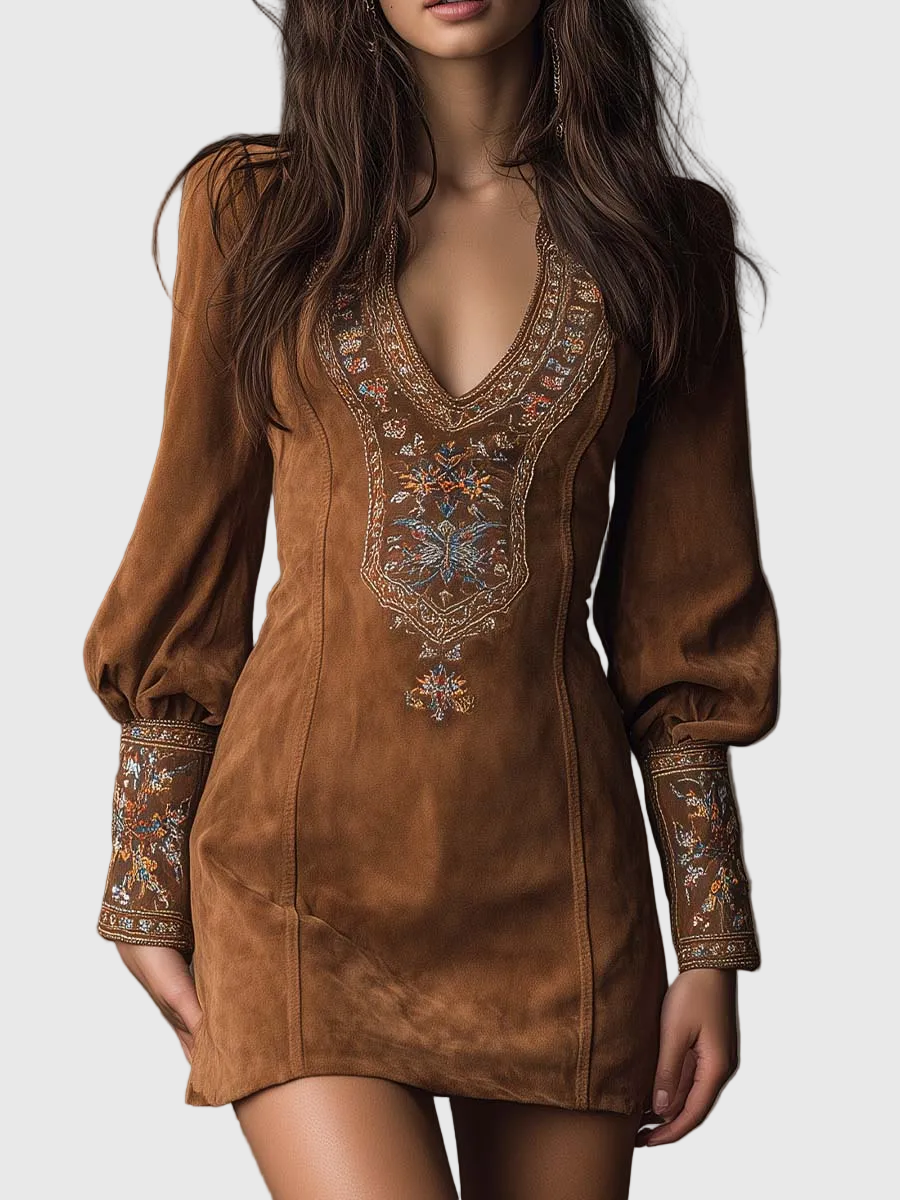 A hímzett mini velúr ruha Lila a hasonló velúr puhaságát ötvözi a nyakban és a mandzsettákon található finom virágmintákkal, hogy egy nőies és különleges megjelenést biztosítson. A V-nyak optikailag nyújtja a sziluettet, a puffos hosszú ujjú kialakítás kiegyensúlyozza a formát, míg a mini hosszúság karaktert ad anélkül, hogy túlzó lenne – tökéletes délutántól estig, akár kék, akár melegebb árnyalatokban.