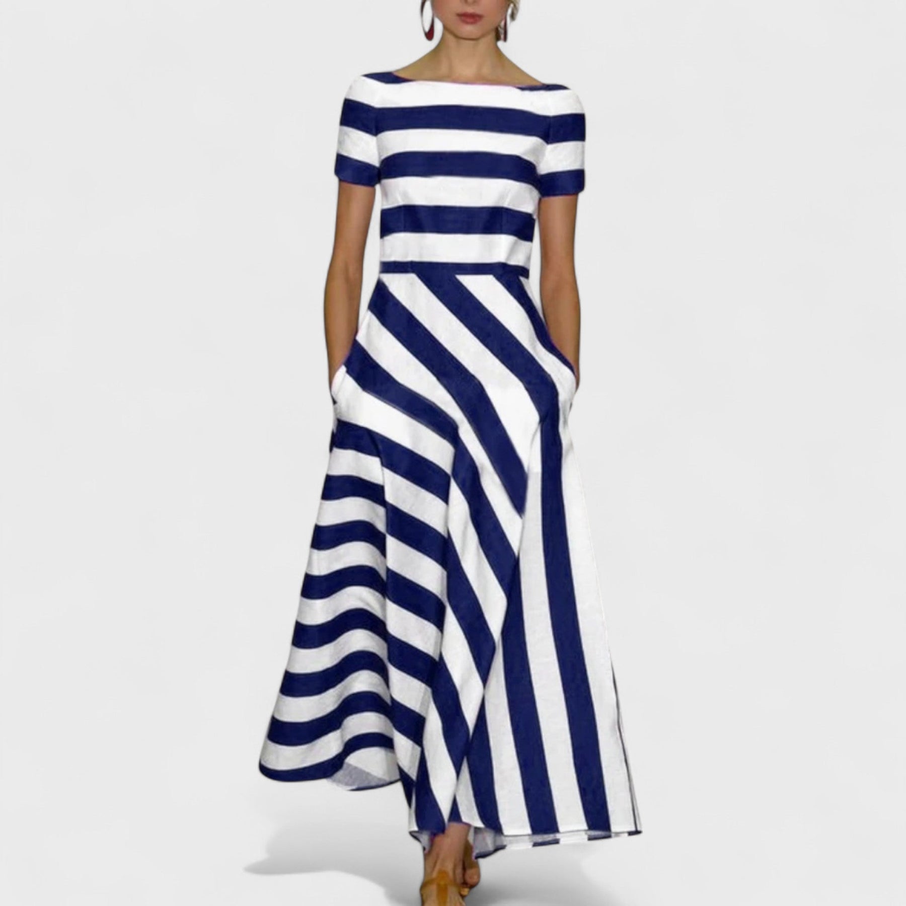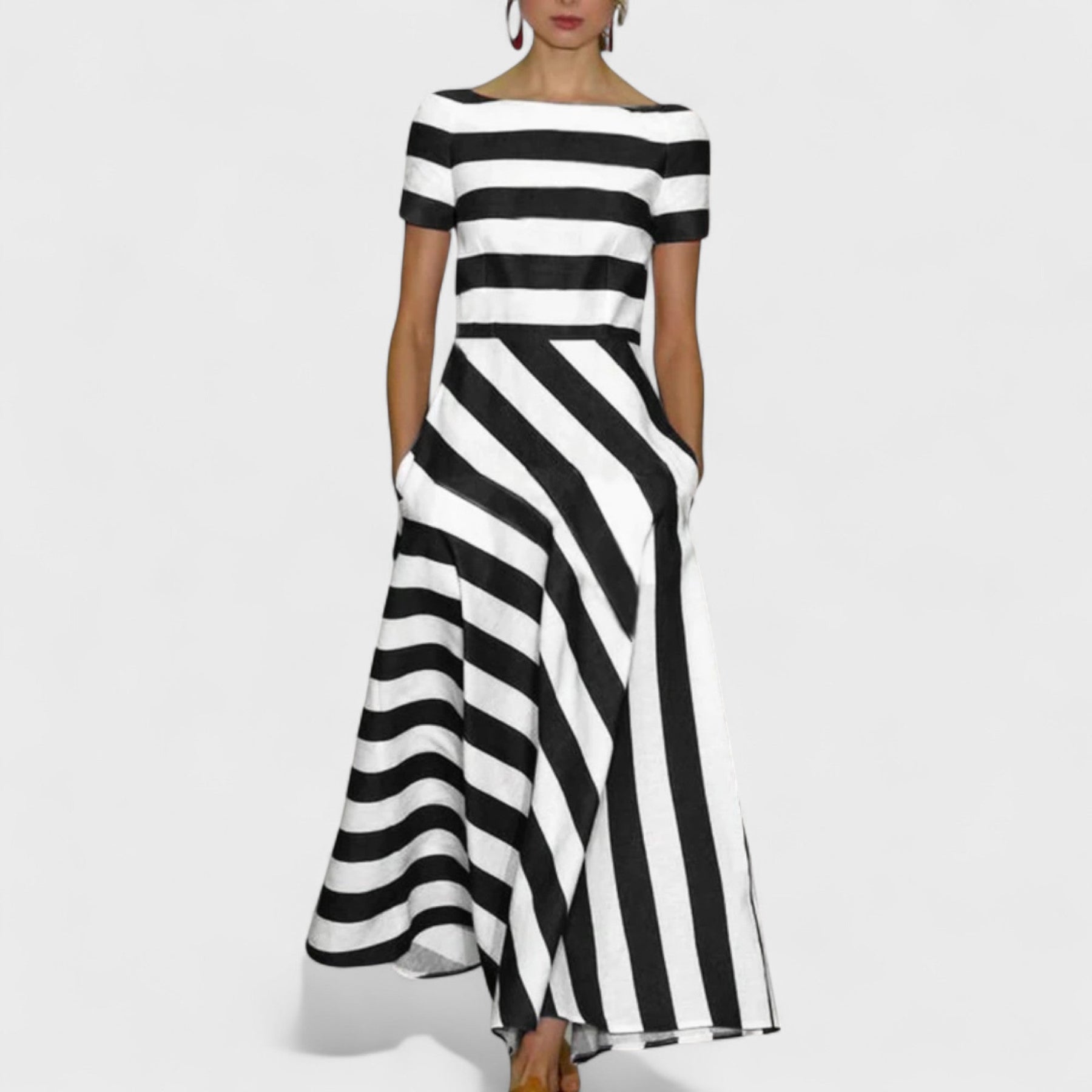 Réteges csíkok & testhezálló derék – optikailag karcsúsítja a sziluettet, és finom grafikai eleganciát ad hozzá felesleges zaj nélkül.