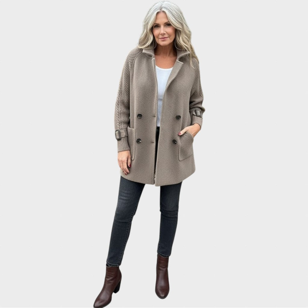 Ölelje át a kifogástalan eleganciát a Rózsa™ | Középhosszú kabát dupla gombolással — gondosan megalkotva azoknak a nőknek, akik értékelik az örök kifinomultságot és a mindennapi kényelmet.