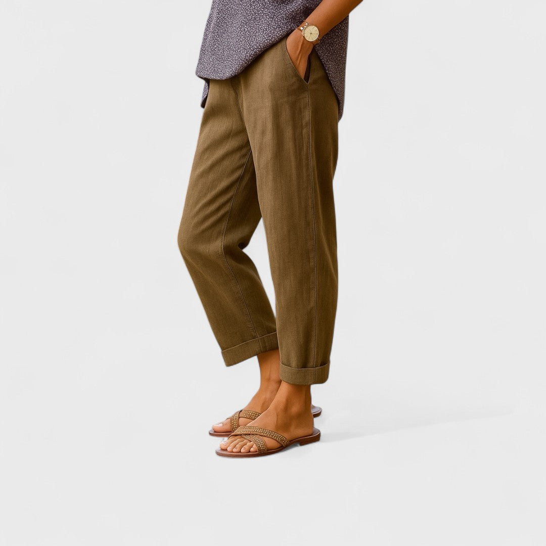 Az Otúlie nadrágok a természetes anyagok kényelmét ötvözik egy elegáns szabással, amely minden outfithez illik. A kényelmes szabás, a lélegző anyag és az időtlen dizájn garantálja, hogy stílusosan nézzen ki még a magas hőmérsékletben is – mindezt a kényelem feláldozása nélkül.